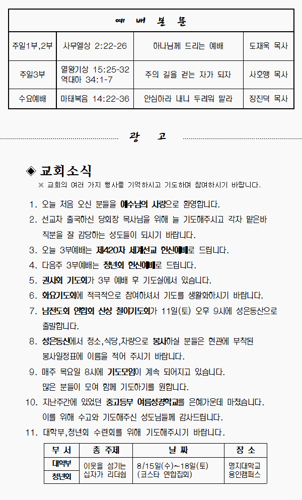 2012년 8월 5일 예배본문 & 교회소식 페이지 정보 작성자 최고관리자 작성일12-08-03 15:04 조회11,014회 관련링크 이전글 다음글 목록 본문 2012년 8월 5일 예배본문 & 교회소식 이전글 다음글 목록