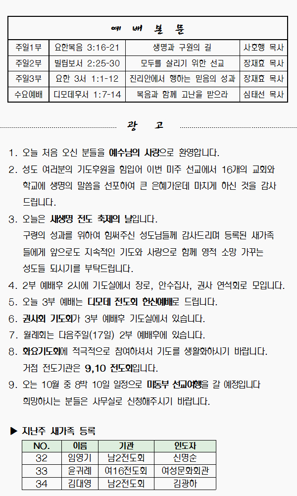 2012년 6월 10일 예배본문 & 교회소식 페이지 정보 작성자 최고관리자 작성일12-06-08 18:21 조회10,780회 관련링크 이전글 다음글 목록 본문 2012년 6월 10일 예배본문 & 교회소식 이전글 다음글 목록