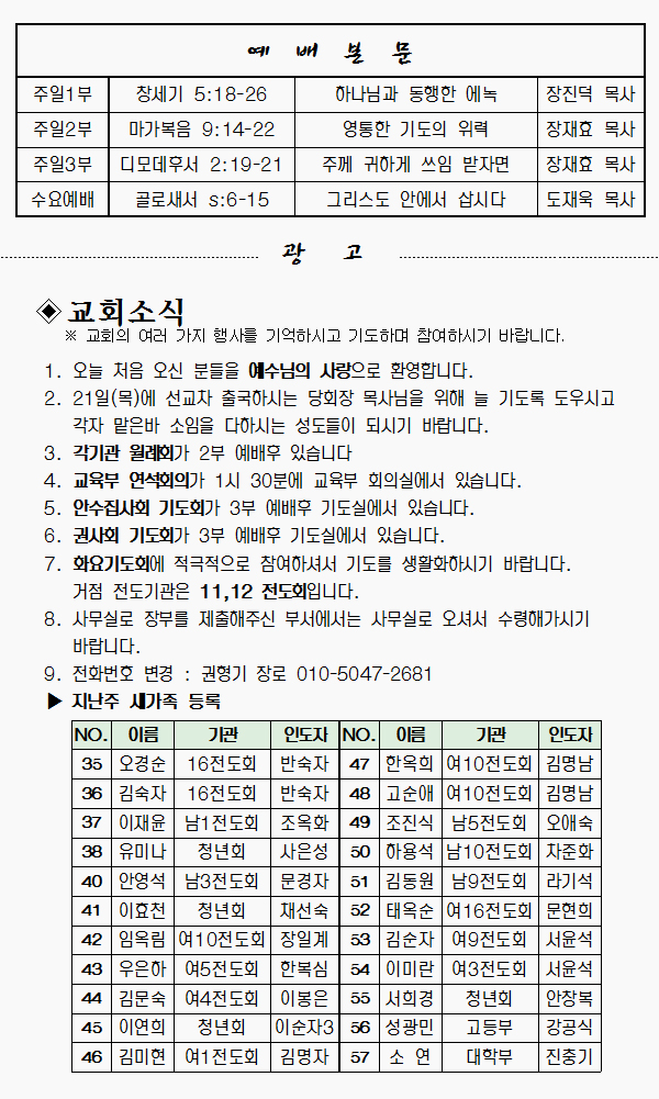 2012년 6월 17일 예배본문 & 교회소식 페이지 정보 작성자 최고관리자 작성일12-06-15 17:59 조회10,709회 관련링크 이전글 다음글 목록 본문 2012년 6월 17일 예배본문 & 교회소식 이전글 다음글 목록