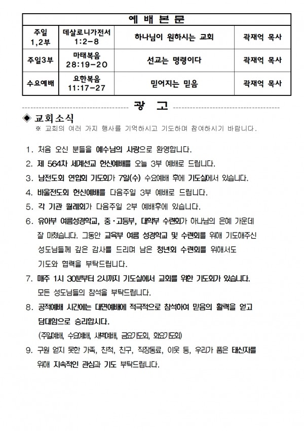 2024년 8월 4일 예배본문 & 교회소식 페이지 정보 작성자 성은교회 작성일24-08-02 16:42 조회4,179회 관련링크 이전글 다음글 목록 본문 2024년 8월 4일 예배본문 & 교회소식 이전글 다음글 목록