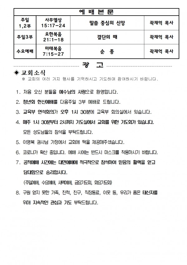 2024년 8월 18일 예배본문 & 교회소식 페이지 정보 작성자 성은교회 작성일24-08-16 16:32 조회3,955회 관련링크 이전글 다음글 목록 본문 2024년 8월 18일 예배본문 & 교회소식 이전글 다음글 목록