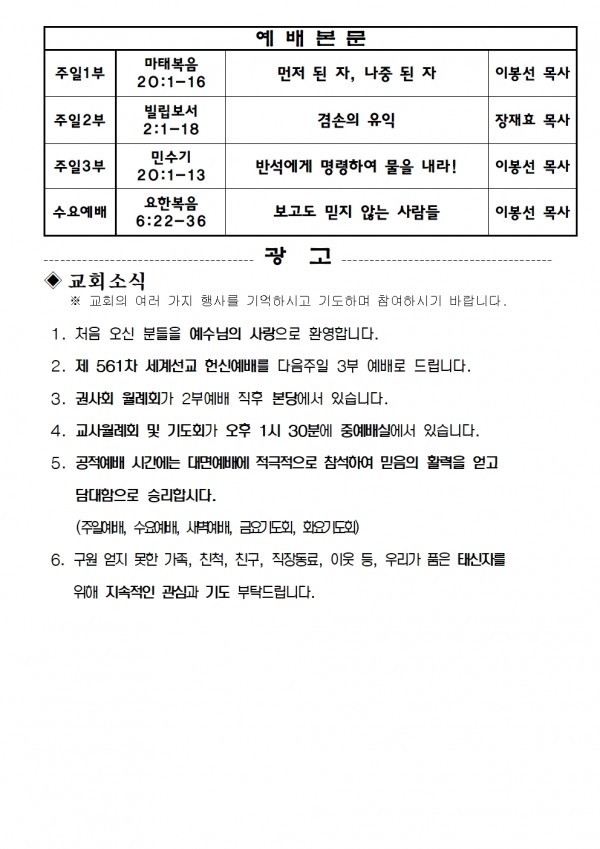 2024년 4월 28일 예배본문 & 교회소식 페이지 정보 작성자 성은교회 작성일24-04-26 12:38 조회4,511회 관련링크 이전글 다음글 목록 본문 2024년 4월 28일 예배본문 & 교회소식 이전글 다음글 목록