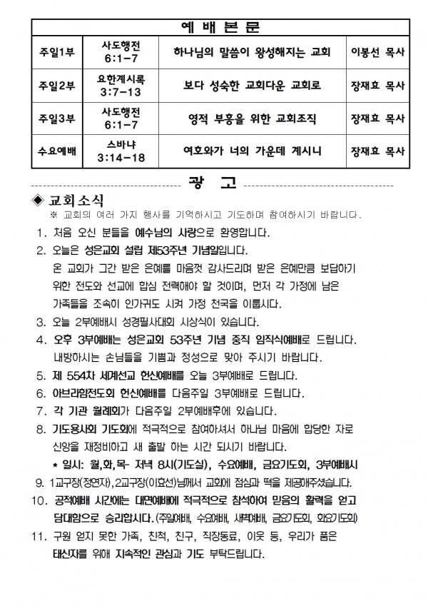 2023년 10월 1일 예배본문 & 교회소식 페이지 정보 작성자 성은교회 작성일23-09-30 12:53 조회4,687회 관련링크 이전글 다음글 목록 본문 2023년 10월 1일 예배본문 & 교회소식 이전글 다음글 목록