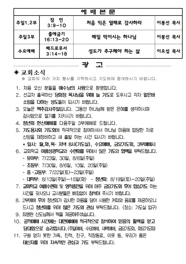 2023년 7월 23일 예배본문 & 교회소식 페이지 정보 작성자 성은교회 작성일23-07-21 16:14 조회4,873회 관련링크 이전글 다음글 목록 본문 2023년 7월 23일 예배본문 & 교회소식 이전글 다음글 목록