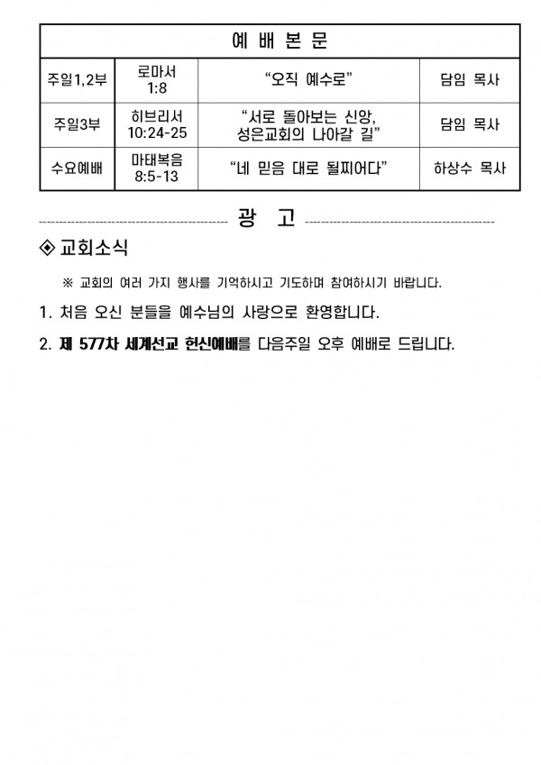 2025년 8월 31일 예배본문 & 교회소식 페이지 정보 작성자 성은교회 작성일25-08-29 18:38 조회2,270회 관련링크 이전글 다음글 목록 본문 2025년 8월 31일 예배본문 & 교회소식 이전글 다음글 목록