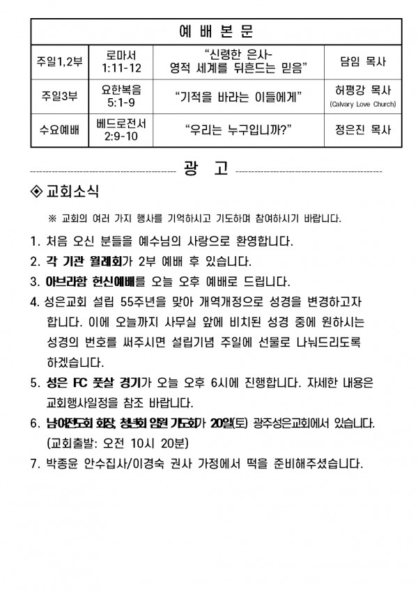 2025년 9월 14일 예배본문 & 교회소식 페이지 정보 작성자 성은교회 작성일25-09-12 11:25 조회2,237회 관련링크 이전글 다음글 목록 본문 2025년 9월 14일 예배본문 & 교회소식 이전글 다음글 목록