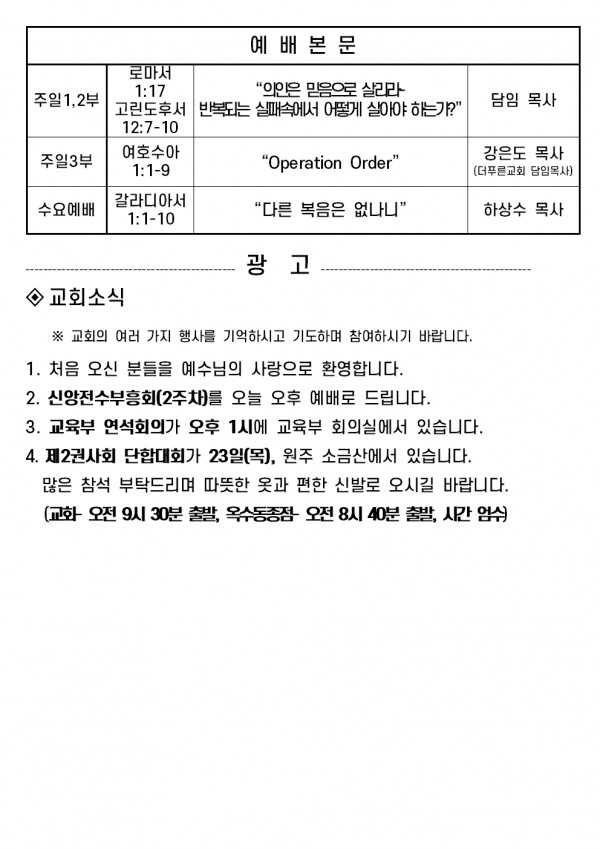 2025년 10월 19일 예배본문 & 교회소식 페이지 정보 작성자 성은교회 작성일25-10-17 18:18 조회1,672회 관련링크 이전글 다음글 목록 본문 2025년 10월 19일 예배본문 & 교회소식 이전글 다음글 목록